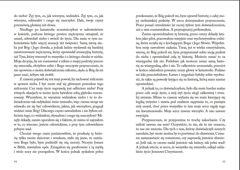 Niesamowita historia Dale’a budzi pasję do wieczności, pozwalając dotknąć życia po śmierci, odkryć niesamowity plan Boga dla naszego życia, pomaga odnaleźć już teraz cel, sens i jasność – w świetle wieczności.