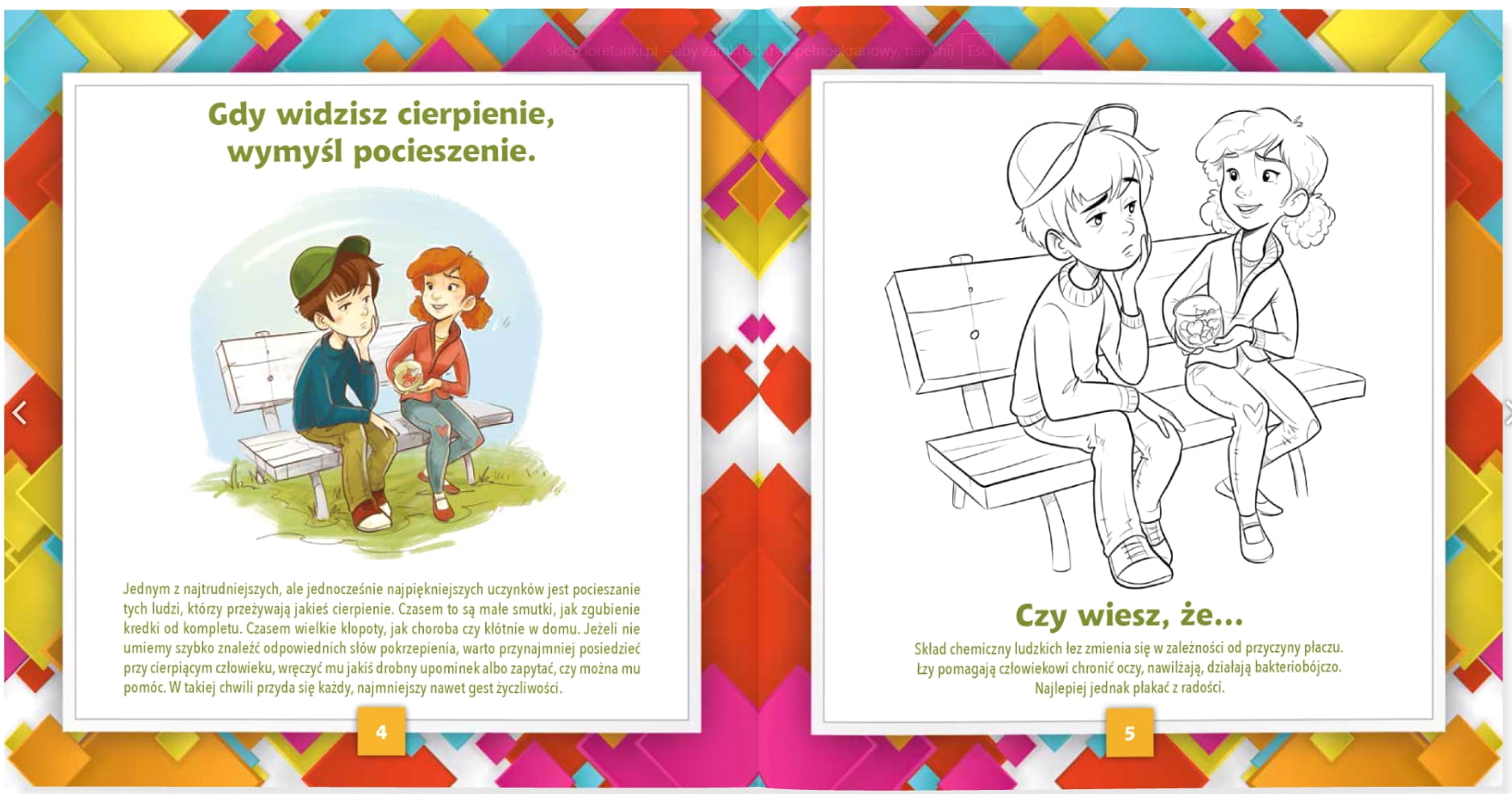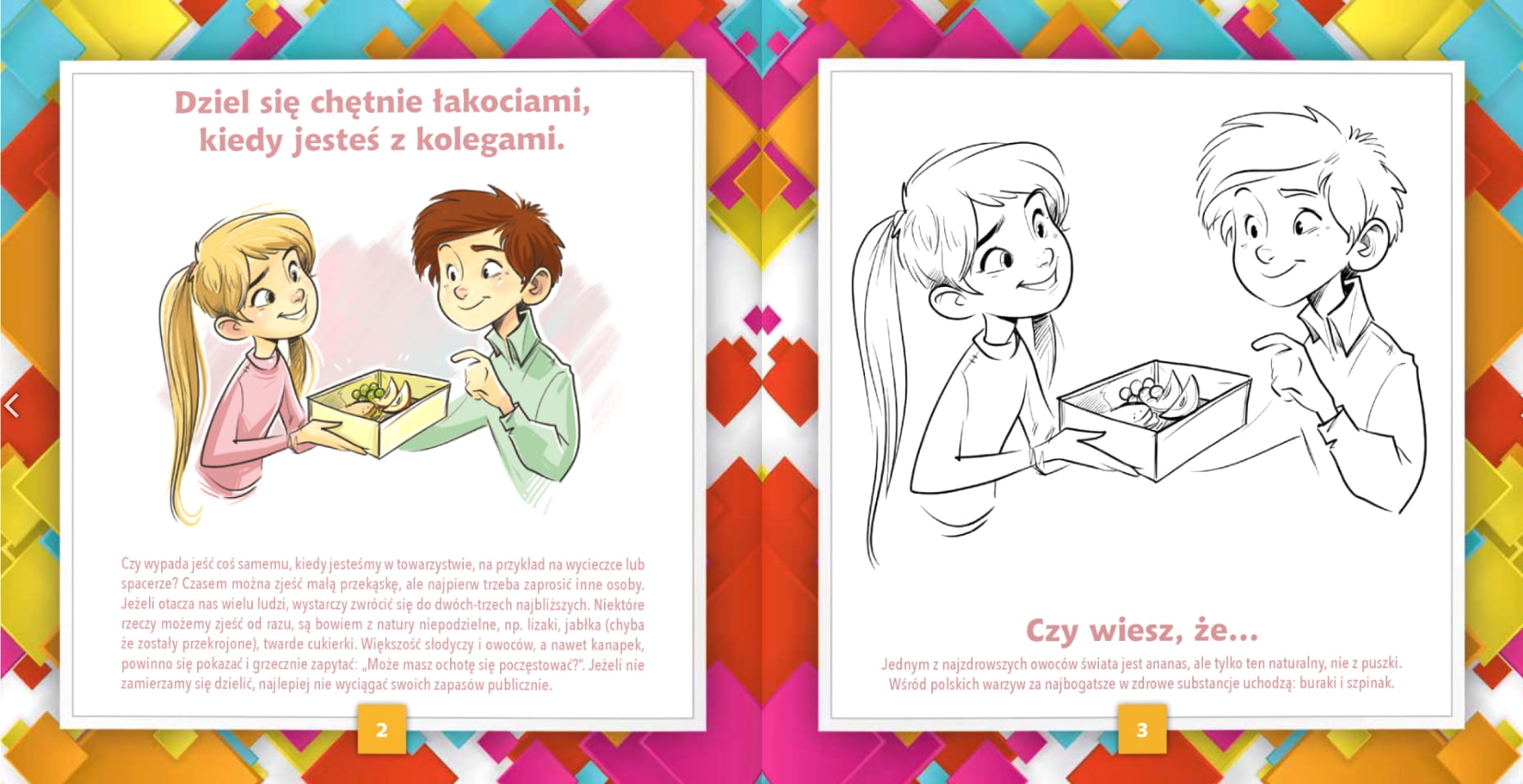 W szkole spotykamy wiele osób: swoją grupę, starsze i młodsze klasy, nauczycieli, pracowników, rodziców. Warto zachowywać się wobec nich elegancko. Do tego dochodzą obowiązki związane z nauką, czystością, punktualnością itp. Nie jest łatwo przebywać między ludźmi, nawet między przyjaciółmi. Co zrobić, aby kolejny dzień w szkole upłynął nam jak najłatwiej? Zajrzyjcie do kolorowanki, a zdradzimy wam kilka sekretów.
