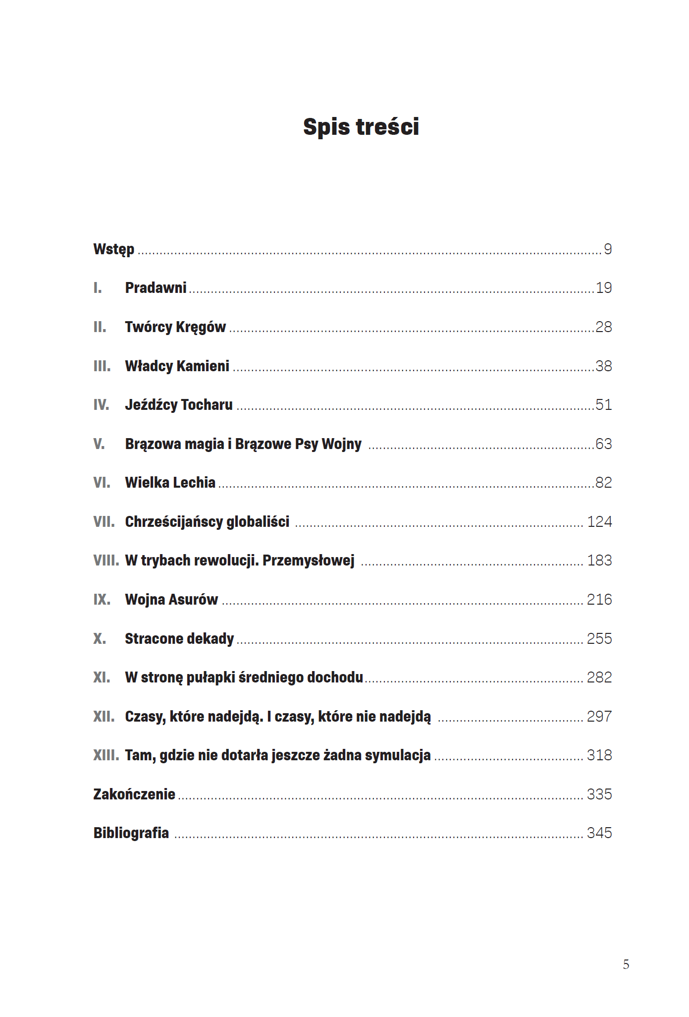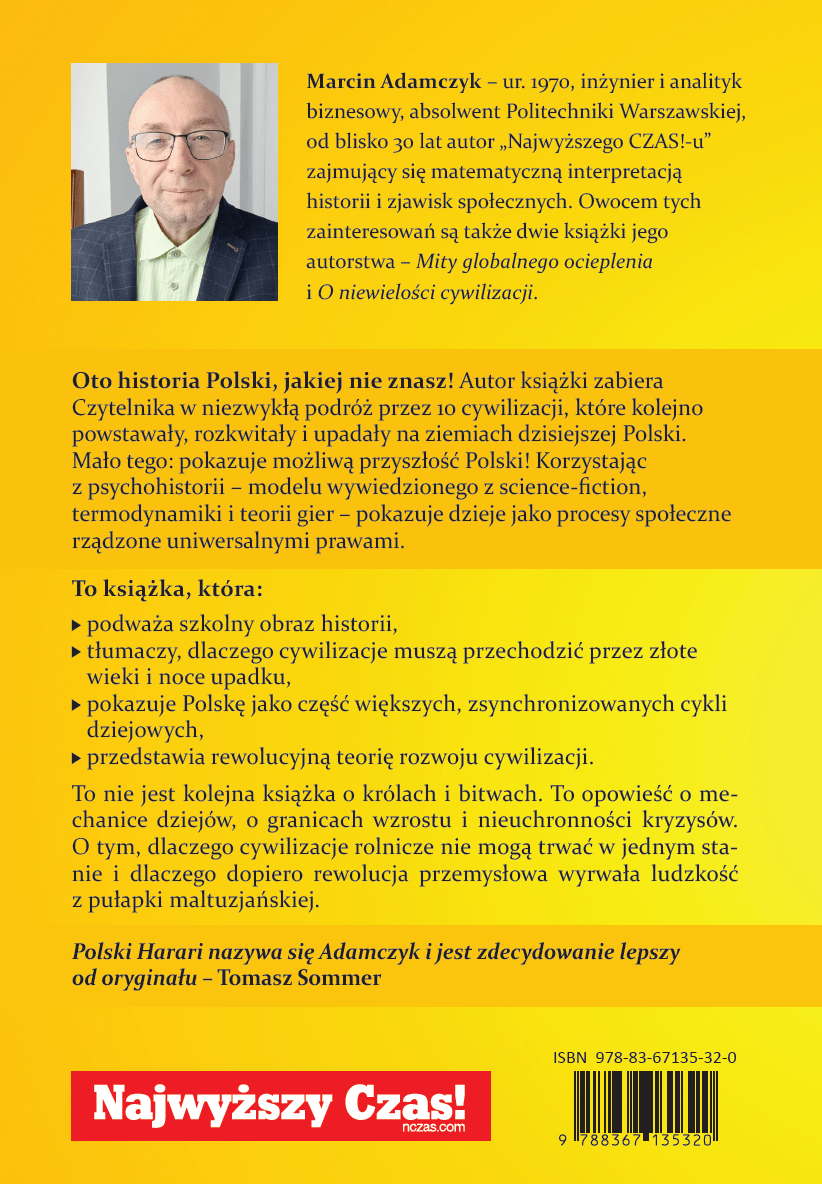 Oto historia, jakiej nie znasz. Polska, jakiej się nie spodziewasz! Autor książki zabiera Czytelnika w niezwykłą podróż przez 10 zapomnianych cywilizacji, które kolejno powstawały, rozkwitały i upadały na ziemiach dzisiejszej Polski. Korzystając z psychohistorii – modelu wywiedzionego z ekologii, termodynamiki i teorii gier – pokazuje dzieje nie jako zbiór dat i władców, lecz jako procesy społeczne rządzące się uniwersalnymi prawami.