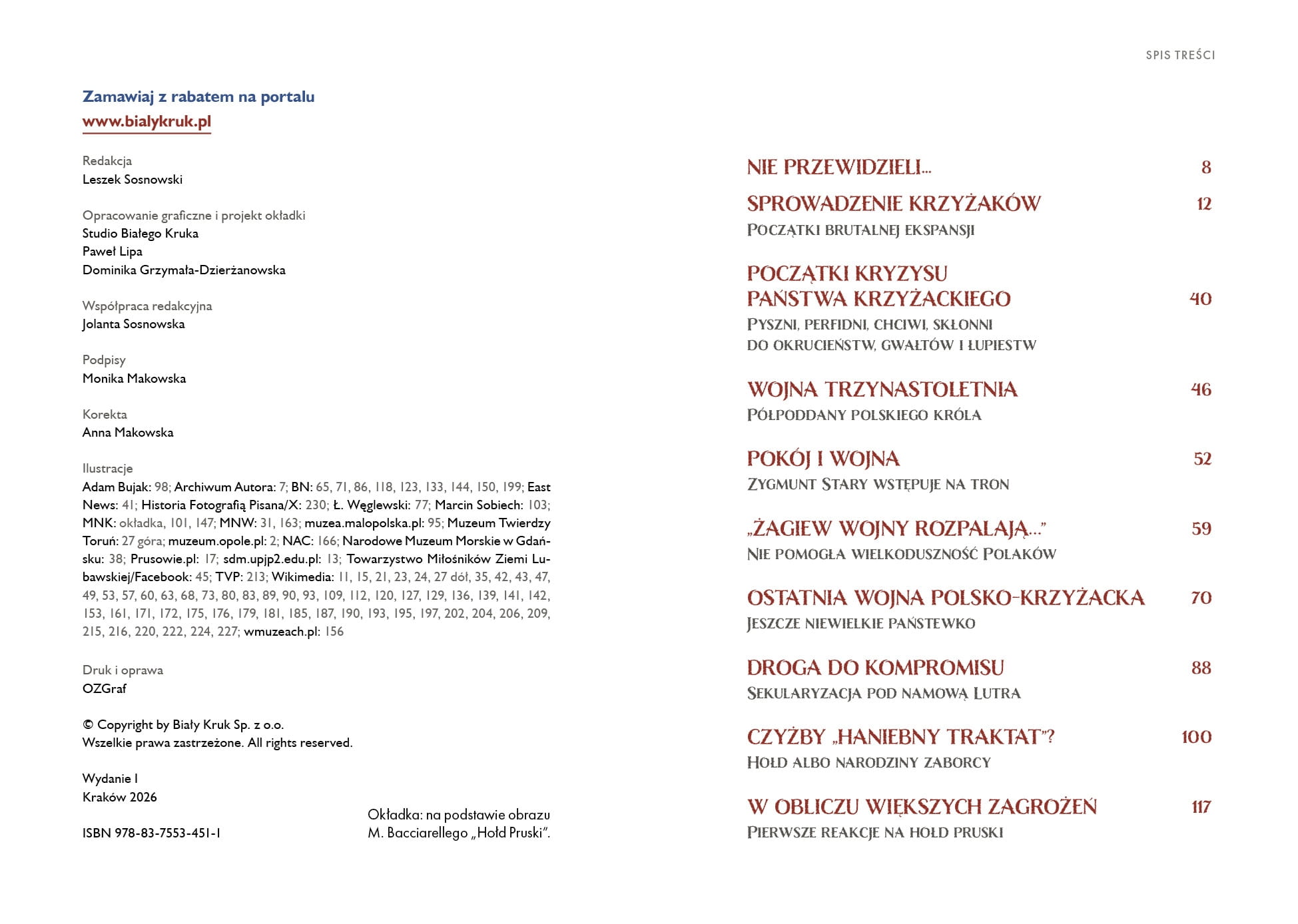 Czy można winić za ustępliwość króla Zygmunta Starego, czy jednak raczej jego następców, którzy nie wykorzystali kilku okazji, by wcielić Prusy w całości do Rzeczypospolitej? Kraj był wówczas tak wielki, że samymi Prusami nikt się specjalnie nie przejmował… Miało to okazać się wielkim błędem. Rozważania na ten temat snuje doświadczony historyk, specjalista od tej epoki, prof. Stefan Ciara. Autor sięga wstecz i opisuje, jak doszło do narodzin państwa najpierw zakonnego, potem świeckiego, ale lennego, aż po nowe królestwo, które w XVIII w. wzięło udział w rozbiorach Rzeczypospolitej. Pyszni, perfidni, chciwi, skłonni do okrucieństw, gwałtów i łupiestw – tak pisano o Krzyżakach; czyż to samo nie odnosi się do państwa pruskiego?